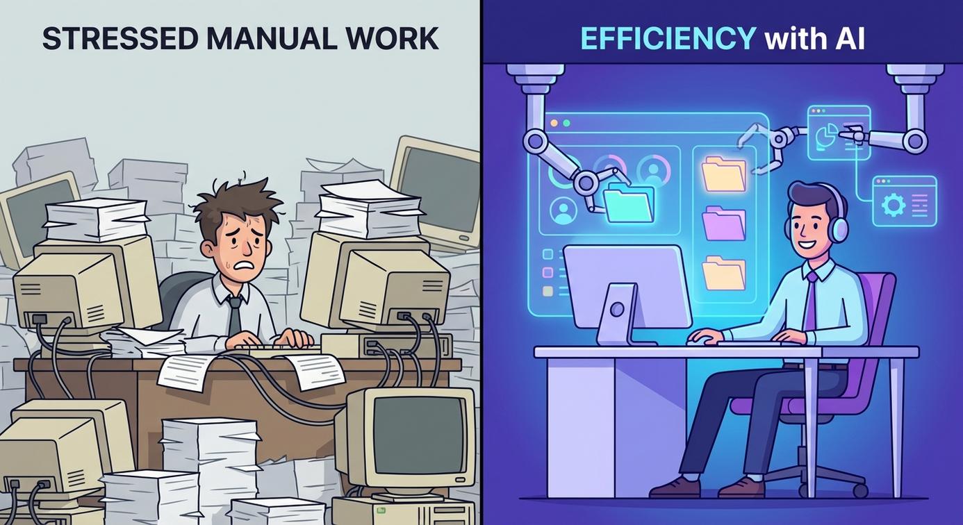 ההבדל הגדול הוא ביכולת לטפל במקרי קצה. אוטומציה רגילה חוסכת זמן; אוטומציה עם AI מייצרת שקט נפשי.